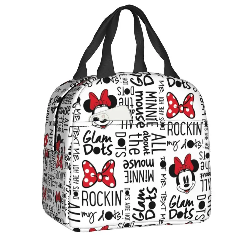 Découvrez Minnie Magique, notre sac isotherme élégant orné d’un motif répété de Minnie Mouse et de glum dots. Ce sac pratique possède des poignées et une sangle noire, parfait pour transporter vos repas en toute sécurité. Alliant style et fonctionnalité, il conservera vos aliments au frais tout au long de la journée. Que ce soit pour un lunch au travail ou un pique-nique, il est votre compagnon incontournable. 🎀🥪